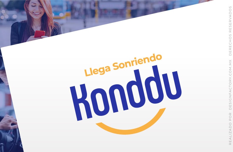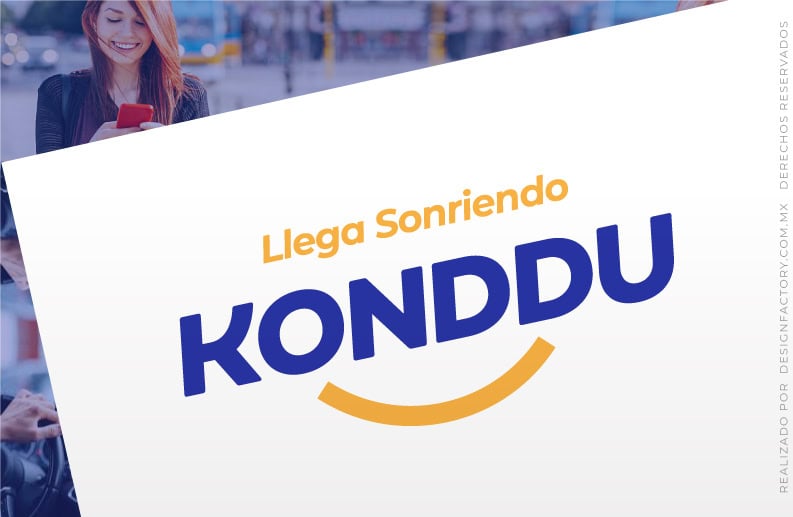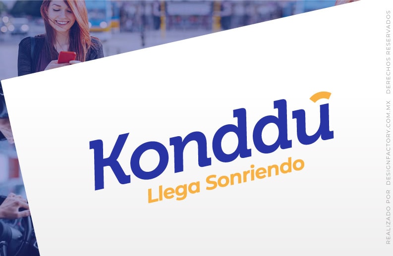 En este logo podemos apreciar los elementos que aplicamos a los anteriores, ahora con una tipografía condensada inspirada en los edificios y postes de luz de la ciudad que se aprecian como el paisaje urbano en el trayecto, las formas curvas de las letras refuerzan su estilo amigable, la curva inferior genera la sonrisa y representa el volante, la rueda de auto y el trayecto entre dos puntos; el conjunto con las letras O y la segunda D forman un rostro amigable que refuerza la personalidad del logo.