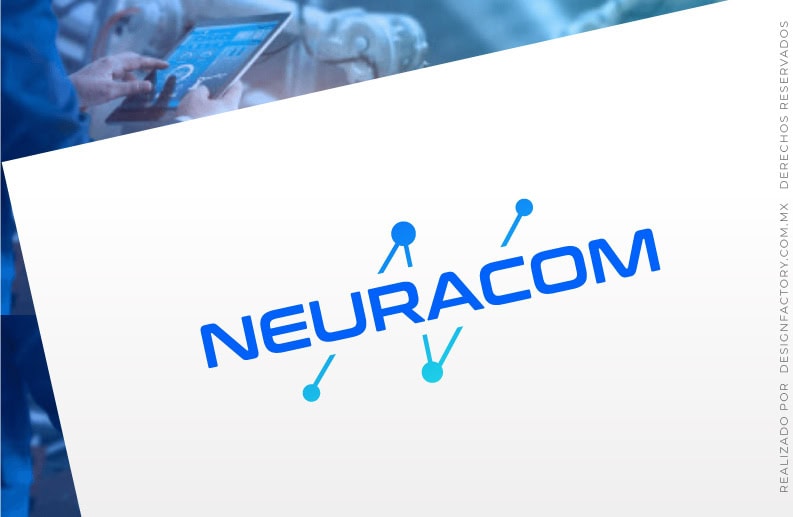 En este diseño de logo aplicamos una tipografía de estilo robótico muy adecuado para el tema de automatización y que cuenta con una personalidad un tanto más soberbia, que además expresa experiencia y alta tecnología, su estilo extendido parece deslizarse como una línea de producción industrial. El gráfico que parece de fondo muestra puntos de diferentes tamaños que se conectan entre si, representando conexiones ya sean neuronales, tecnológicas y entre dispositivos, conformando en conjunto la figura de la letra N. El trayecto que sigue la vista entre los puntos genera un efecto de movimiento que le aporta dinamismo al Logo.